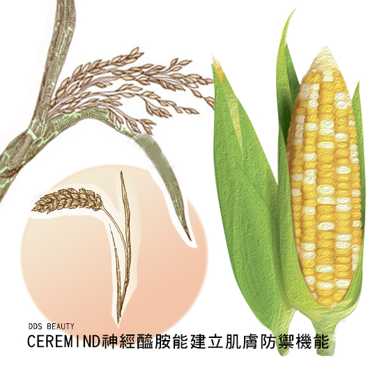 年紀增加時,神經醯胺的分泌量會減少,造成角質層無法保留水分、養分,使皮膚產生乾燥、粗裂。而經由外部擦拭補充神經醯胺,能增加角質細胞的粘合力,減低水分的散失,而達到保濕的效果。糙米、玉米、小麥…等食物裡面含有微量,如果想要達到改善過敏的效果,建議吃萃取物的營養品補充才會夠。平時我們可使用含有CEREMIND神經醯胺的保養品來保養肌膚。
